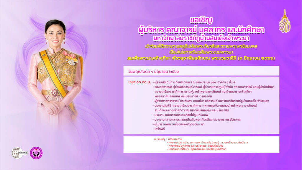 จัดโดย สำนักศิลปะและวัฒนธรรม ร่วมกับ สำนักกิจการนิสิตศึกษา มหาวิทยาลัยราชภัฏบ้านสมเด็จเจ้าพระยา