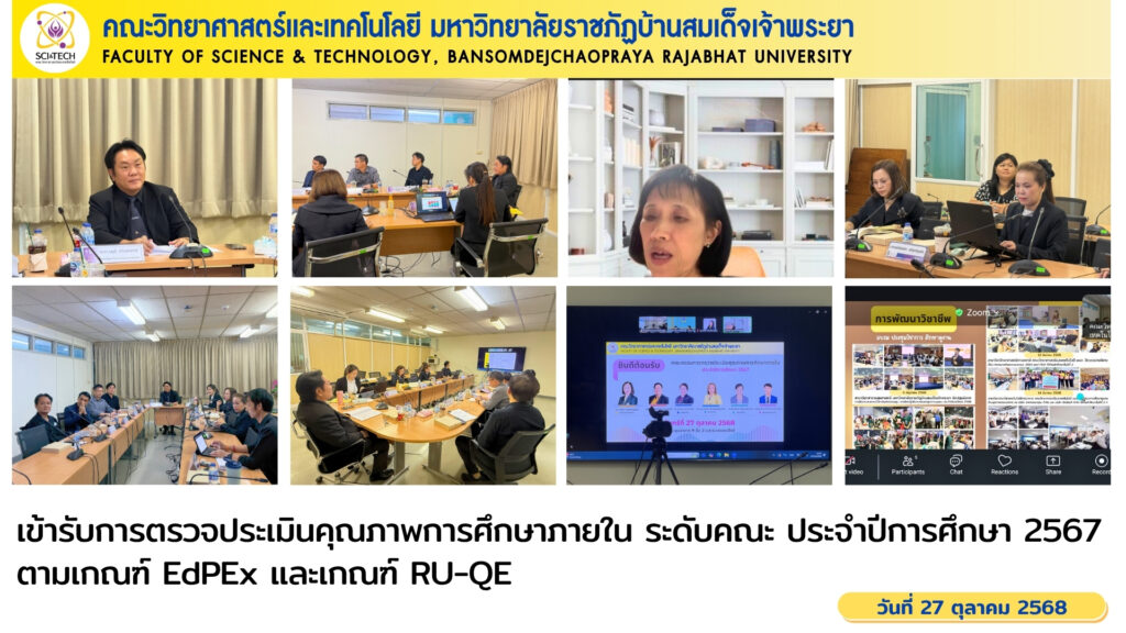 คณะวิทยาศาสตร์และเทคโนโลยี มหาวิทยาลัยราชภัฏบ้านสมเด็จเจ้าพระยา เข้ารับการตรวจประเมินคุณภาพการศึกษาภายใน ระดับคณะ ประจำปีการศึกษา 2567 ตามเกณฑ์ EdPEx และเกณฑ์ RU-QE ณ ห้องประชุมอาคาร 9 ชั้น 2 และระบบออนไลน์