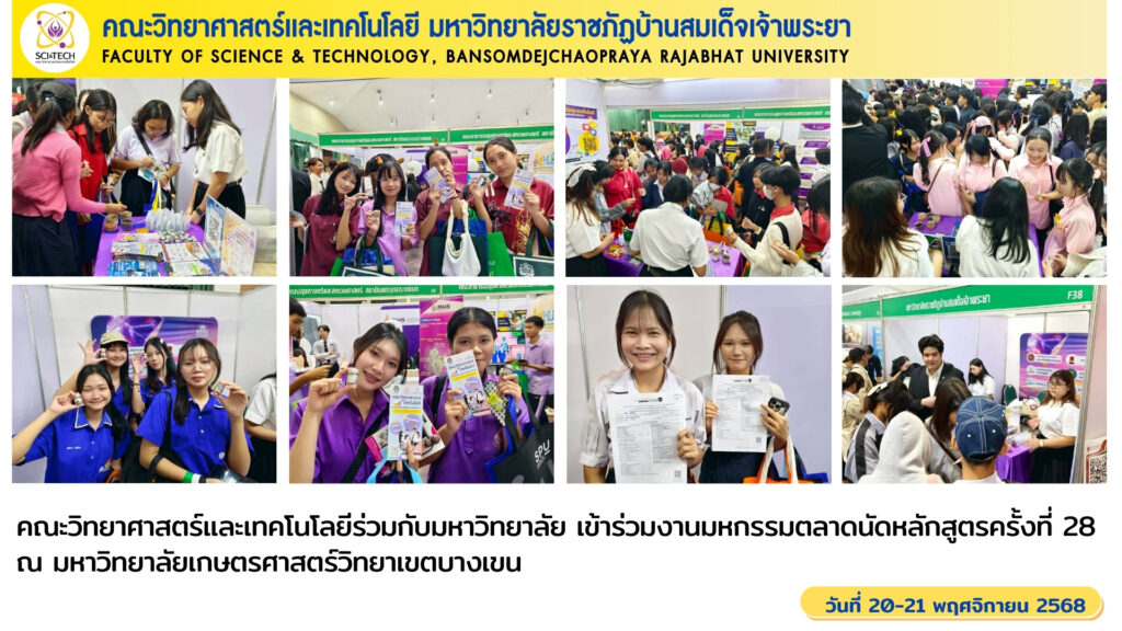 คณะวิทยาศาสตร์และเทคโนโลยี มหาวิทยาลัยราชภัฏบ้านสมเด็จเจ้าพระยา ร่วมกับมหาวิทยาลัย เข้าร่วมงานมหกรรมตลาดนัดหลักสูตรครั้งที่ 28 เพื่อประชาสัมพันธ์หลักสูตรและคณะ ณ มหาวิทยาลัยเกษตรศาสตร์วิทยาเขตบางเขน