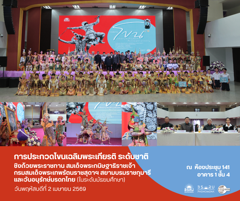2 เมษายน 2569 สำนักศิลปและวัฒนธรรม มหาวิทยาลัยราชภัฏบ้านสมเด็จเจ้าพระยา จัดโครงการประกวดโขนเฉลิมพระเกียรติ ระดับชาติ (ระดับมัธยมศึกษา) ชิงถ้วยพระราชทานสมเด็จพระกนิษฐาธิราชเจ้า กรมสมเด็จพระเทพรัตนราชสุดาฯ สยามบรมราชกุมารี เพื่อร่วมเฉลิมพระเกียรติเนื่องในโอกาสวันคล้ายวันพระราชสมภพของสมเด็จพระกนิษฐาธิราชเจ้า กรมสมเด็จพระเทพรัตนราชสุดาฯ สยามบรมราชกุมารี และวันอนุรักษ์มรดกไทย เพื่อส่งเสริมการอนุรักษ์ สืบสาน และเผยแพร่ศิลปวัฒนธรรมไทยอันทรงคุณค่า ในการนี้ผู้ช่วยศาสตราจารย์ ดร.คณกร สว่างเจริญ อธิการบดี มอบหมายให้ผู้ช่วยศาสตราจารย์ ดร.รังสรรค์ บัวทอง รองอธิการบดี เป็นประธานในพิธี และได้รับเกียรติจากศิลปินแห่งชาติ ผู้เชี่ยวชาญ ทางด้านนาฏศิลป์ไทย – โขน เป็นคณะกรรมการตัดสิน